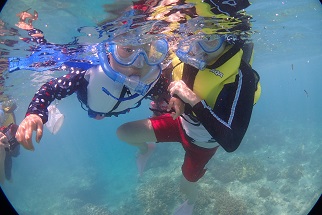 シュノーケリングしてきましたEGGダイビング2017年8月11日読了時間: 1分はいさーい(^_-)-☆ 今回はご家族4人でシュノーケリングしてきました! 台風の影響で波がありましたが、お魚さんは元気そうでしたね(*^_^*) エンゼルフィッシュやハマクマノミなどの色の鮮やかなお魚が 沢山お出迎えしてくれました(*'ω'*) ナマコも触ったりしてきました(*'ω'*) 普段はもっと穏やかなポイントですのでまた是非遊びに来てくださいね☆