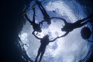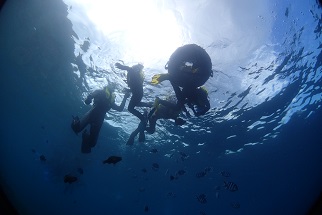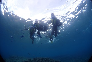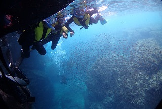 洞窟の手前にはリュウキュウハタンポが群れを作っていて