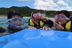 はいさーい! 今回は5名様とゴリラチョップでシュノーケルしてきました(о´∀`о) 台風で一度中止になってしまいましたが今回は海峡も透明度もサイコーでした! みなさんシュノーケルは何度もされてるらしくスイスイと水中で遊んで来ました(^ν^) 綺麗なサンゴやお魚がたくさんいましたね! タマン釣り上げたいですね~(笑) 沖にも泳いでいきクマノミさんもバッチリ見れましたね! 次はみなさんでダイビングしに来てくださいね☆