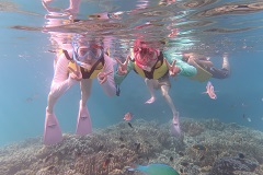 当店は、グループ完全貸切でご案内しております! 他のお客様やグループと同じになる心配はありません。 思う存分自分たちだけで楽しむことができます! 年齢制限を設けていない為、小さいお子様も参加できます!! 泳げないお子様は、箱メガネ付きの浮き輪も準備しています\(^o^)/ お魚もたくさん居て、餌付け体験も出来ます^_-☆ 人気のクマノミも3種類も見ることができます(^^)! 体験中のお写真は、無料プレゼント!!! 写真撮影するカメラも水中撮影用のカメラなので、 自分たちで撮影するよりも綺麗に写ります!! プレゼントする写真の枚数は100~300枚前後\(^o^)/ 写真は、当日メールorLINEにてお送りします(*^◯^*)! 沖縄は年中シュノーケリングを楽しむことが出来ます!! 冬場は5mmの分厚いウェットスーツを着用するので 保温対策もバッチリです!!\(^o^)/ 是非みなさんも参加してみてください!