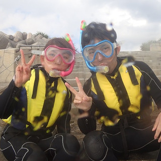 当店は、グループ完全貸切でご案内しております! 他のお客様やグループと同じになる心配はありません。 思う存分自分たちだけで楽しむことができます! 年齢制限を設けていない為、小さいお子様も参加できます!! 泳げないお子様は、箱メガネ付きの浮き輪も準備しています\(^o^)/ お魚もたくさん居て、餌付け体験も出来ます^_-☆ 人気のクマノミも3種類も見ることができます(^^)! 体験中のお写真は、無料プレゼント!!! 写真撮影するカメラも水中撮影用のカメラなので、 自分たちで撮影するよりも綺麗に写ります!! プレゼントする写真の枚数は100~300枚前後\(^o^)/ 写真は、当日メールorLINEにてお送りします(*^◯^*)! 沖縄は年中シュノーケリングを楽しむことが出来ます!! 冬場は5mmの分厚いウェットスーツを着用するので 保温対策もバッチリです!!\(^o^)/ 是非みなさんも参加してみてください!!